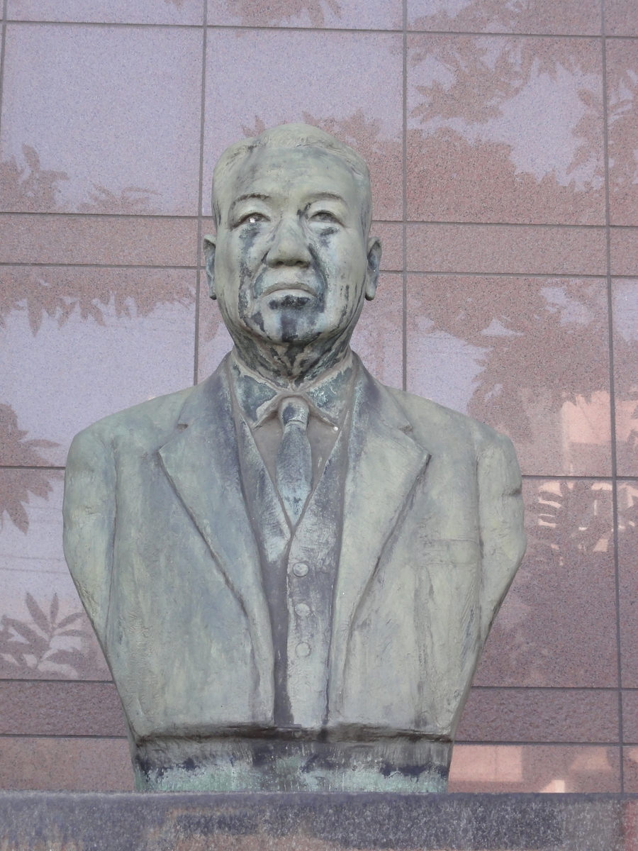 説明:レリーフ像である(“銅像ハンター”と名乗っているが、求めているのはその地にかかわる人物などであるので、立体化されたもの以外でも自分の中では「Ok」である)。出身地に駅を作ったことから、この地に顕彰碑が立っているらしい。